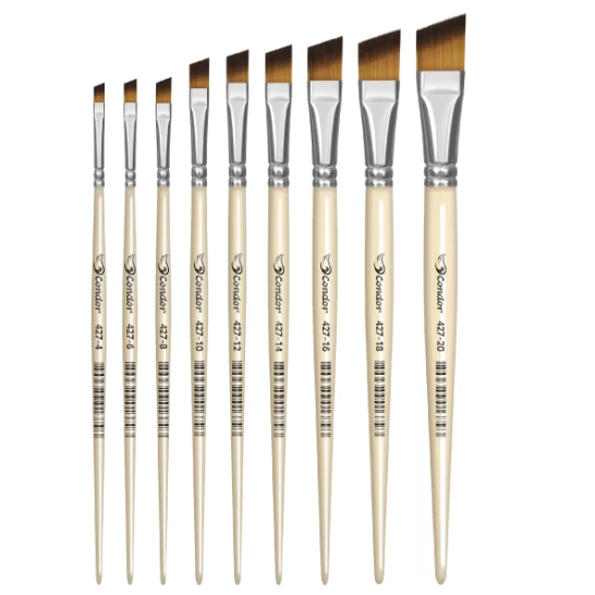 Pincel condor artístico ref. 427 formato chanfrado filamento sintético cabo curto de madeira creme. Indicado para cermica, papel, metal, madeira, Eva, plástico.