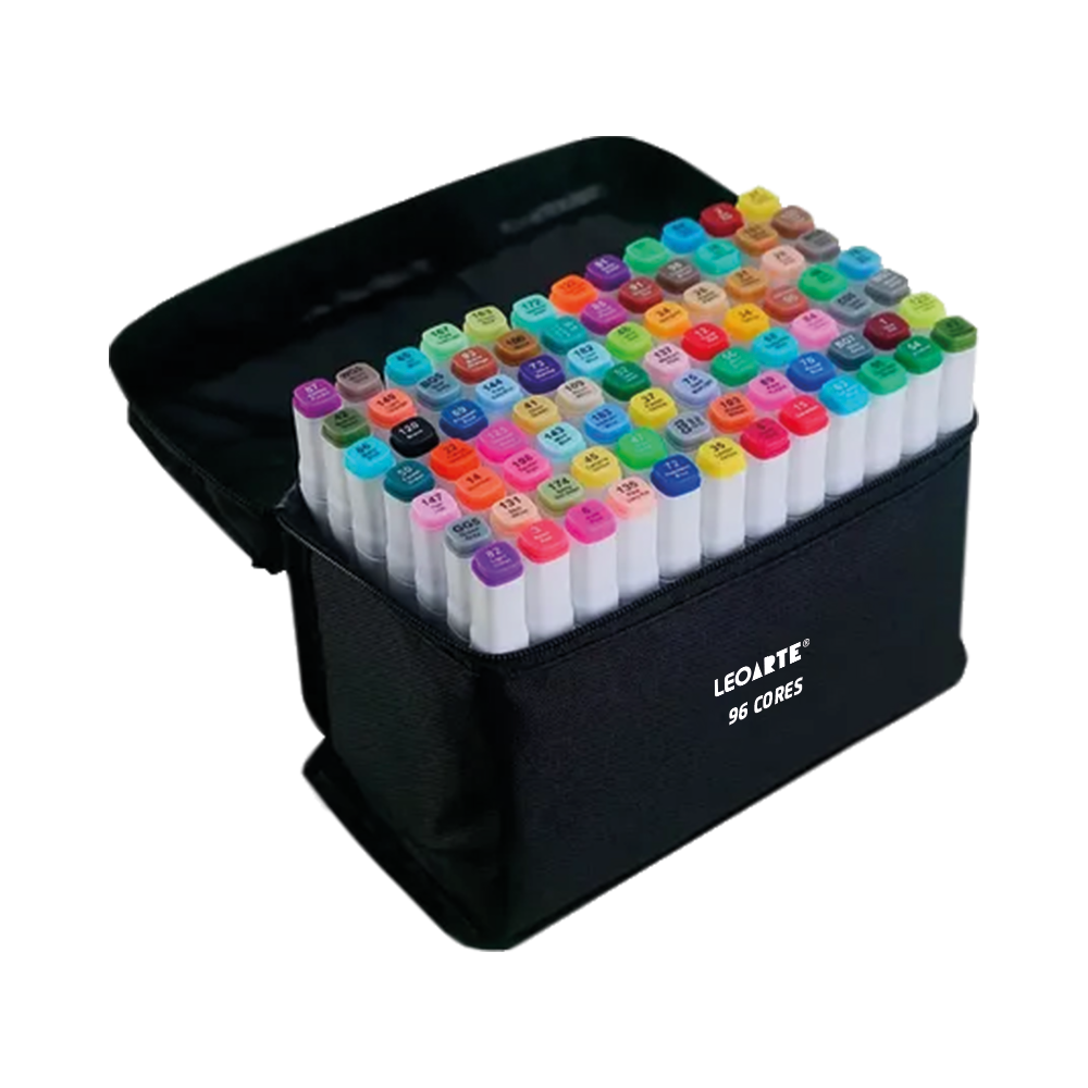 Estojo de Caneta Marcador Ponta Dupla Permanente Base Alcool LEOART - 96 Cores