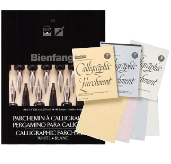 Papel de Caligrafia Pergaminho 04 cores sortidas Bienfang é um papel ideal para certificados, diplomas, convites e cartões personalizados. O papel para caligrafia Bienfang possui uma 04 cores com pequenos manchados em sua superfície, 74g/m² excelente para caligrafia. Produzido através de papel reciclado. Tamanho 21,6x27,9cm. Cores: branco antigo, Ouro, Azul claro e Rosa claro. Contem 50 folhas sortidas. Importado do Canadá. R400140