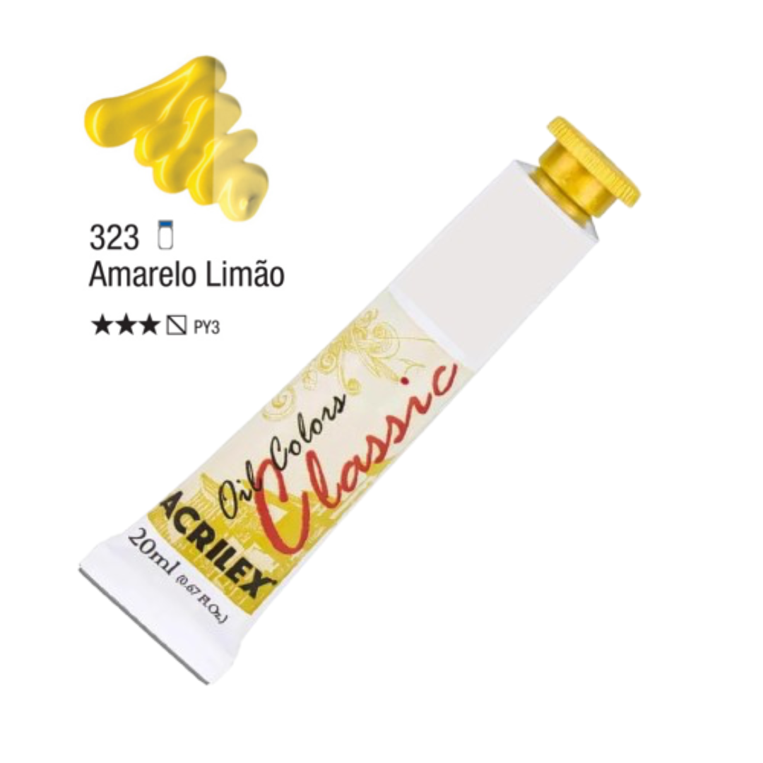 Tinta Óleo em Tubo Oil Colors Classic Acrilex 20mL - Amarelo Limão (323)