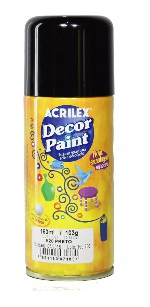 Tinta Spray Base de Água Decor Paint Acrilex 150ml - Preta (520)
